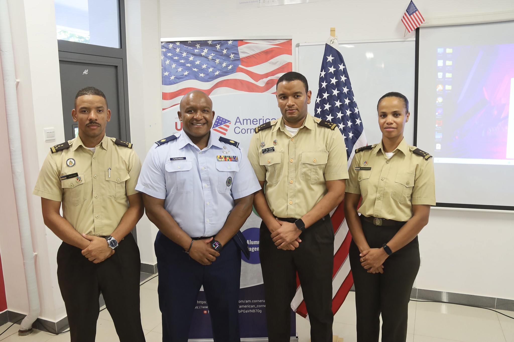 As Forças Armadas de Cabo Verde em parceria com o Grupo Militar dos EUA Cabo Verde, estendem um caloroso agradecimento ao American Corner na Universidade de Cabo Verde por acolher a sessão de informação de hoje sobre oportunidades na Academia Naval dos EUA (USNA) e nos EUA. Academia Militar (USMA).